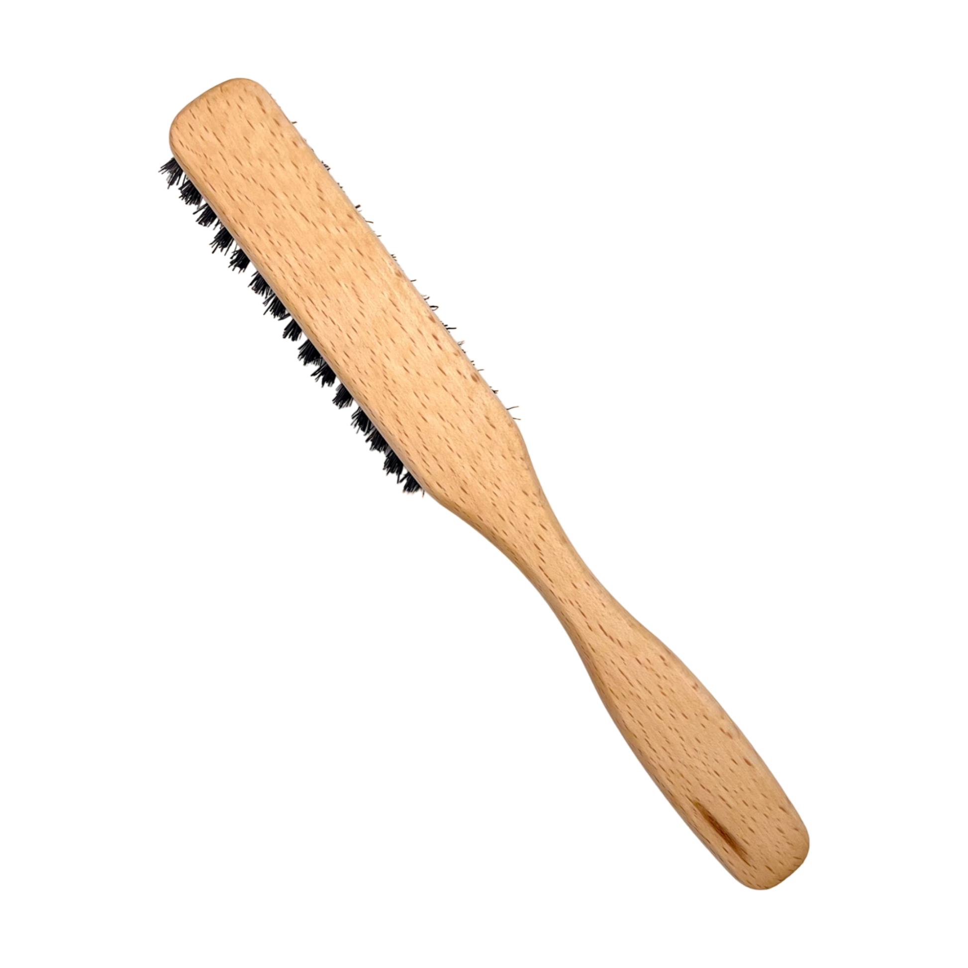 This dural hair brush features four rows of bristles made from wild boar hair, which is known for its ability to distribute natural oils from the scalp to the hair, leaving it smooth and shiny. The brush is also made from beech wood, which is known for its durability and resistance to wear and tear.